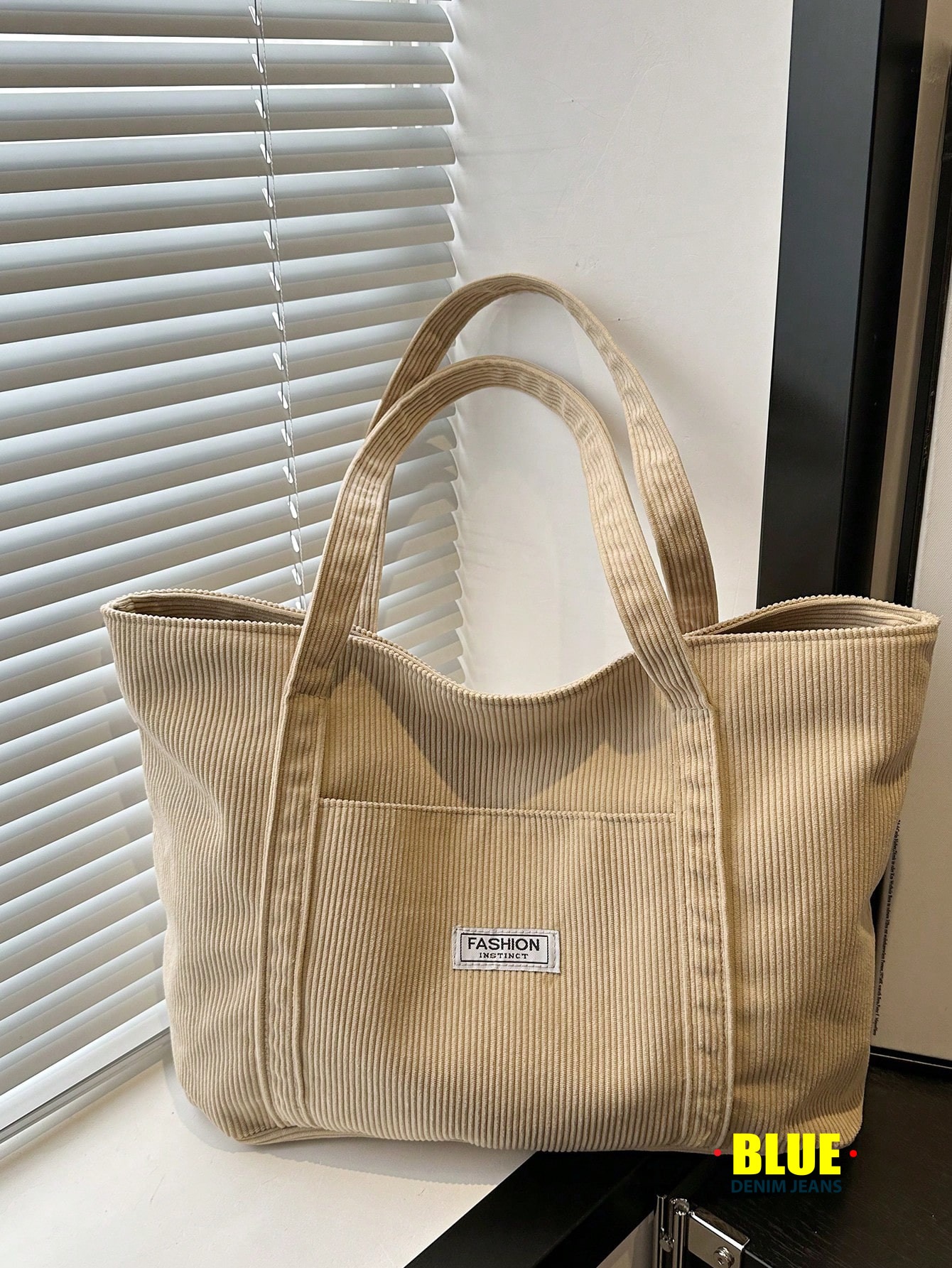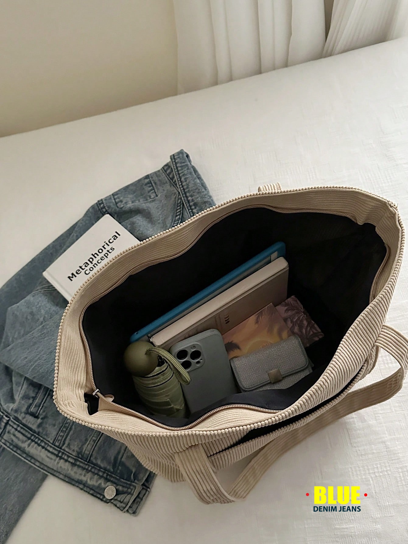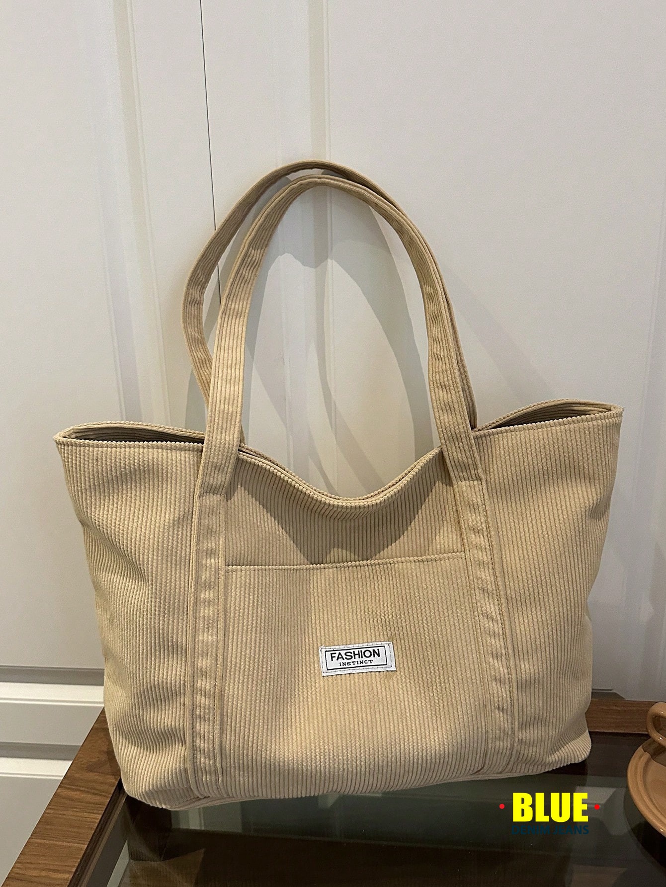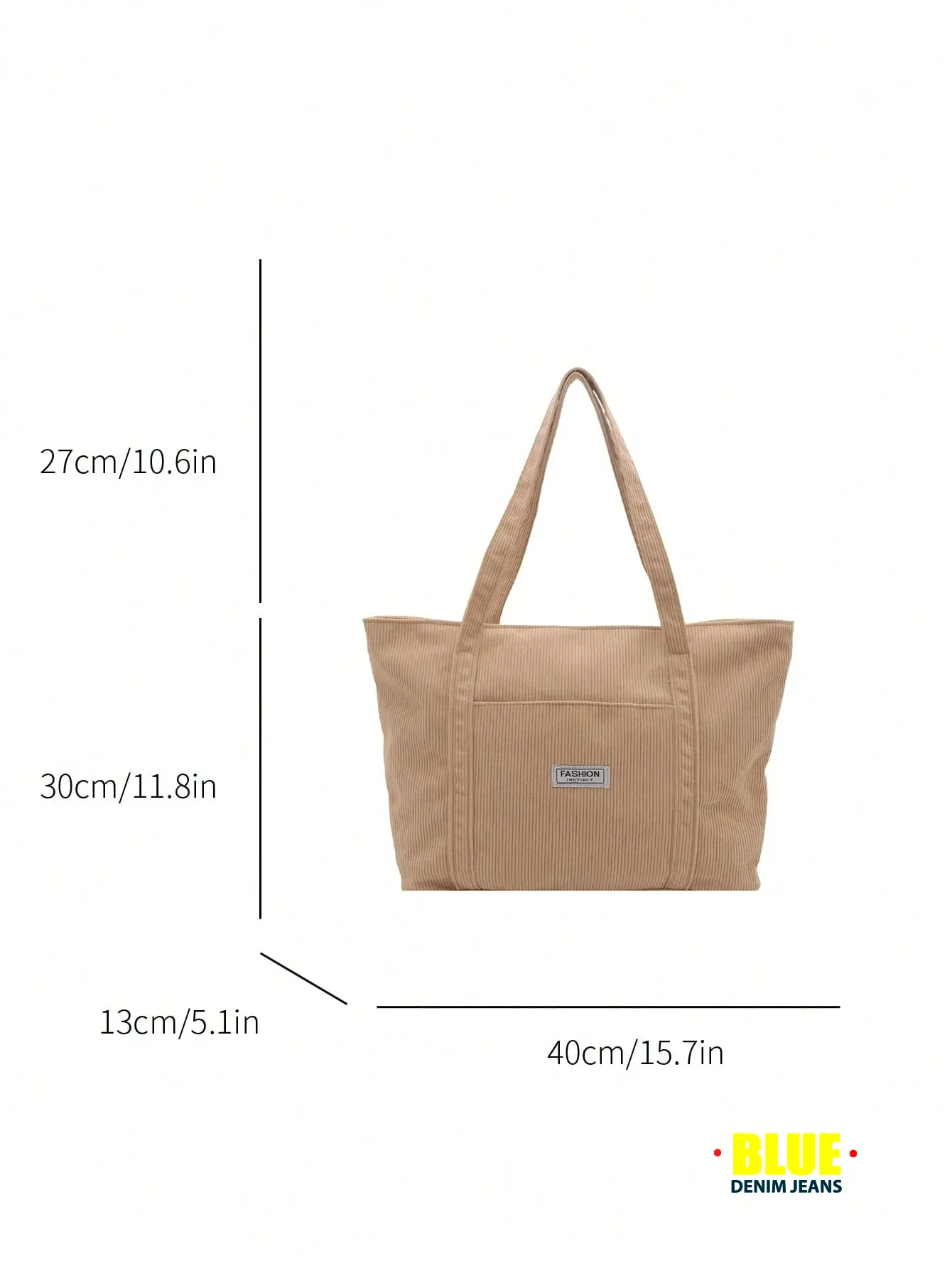 1pc Khaki Fleece Tote Bag, Large Capacity, Fashionable Minimalist Design, Women Shoulder Bag, Winter