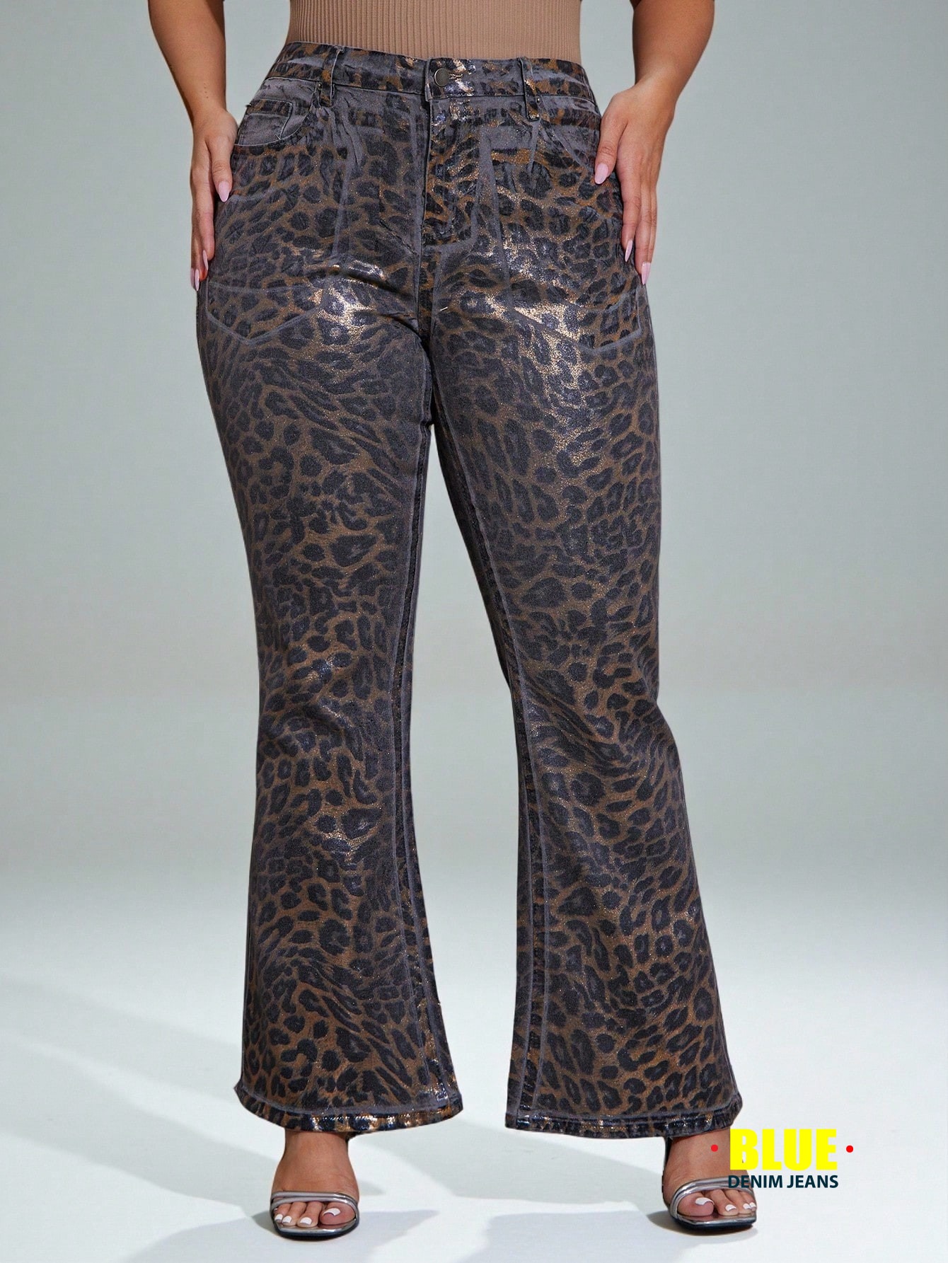 Denimoi Plus Size Leopard Print Pocket Flared Denim Jeans