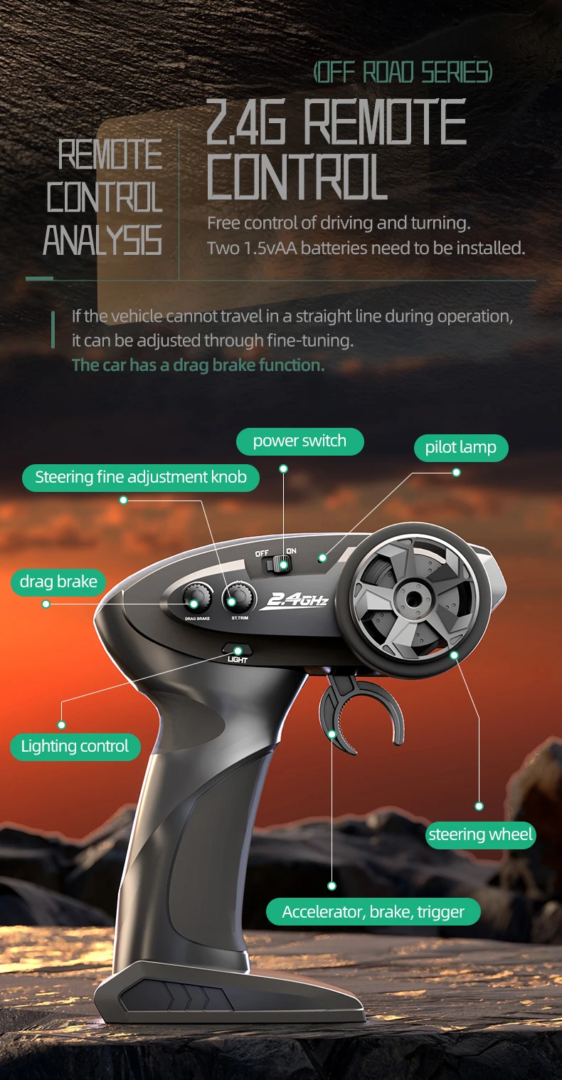 • Speed of 10KM/H, remote control distance of 35 meters