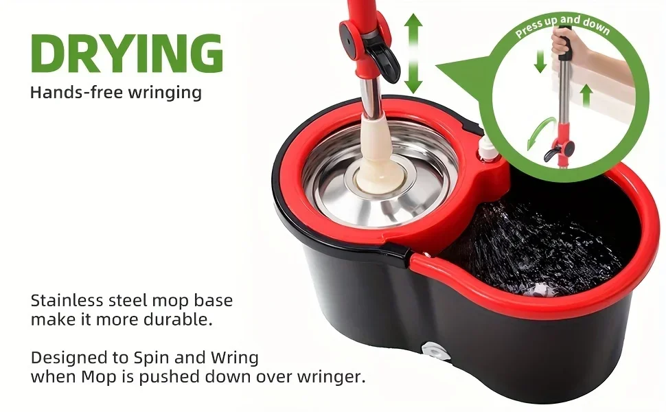Simple, Hands-Free Operation: The foot pedal or push-down wringing system is intuitive and easy to use.