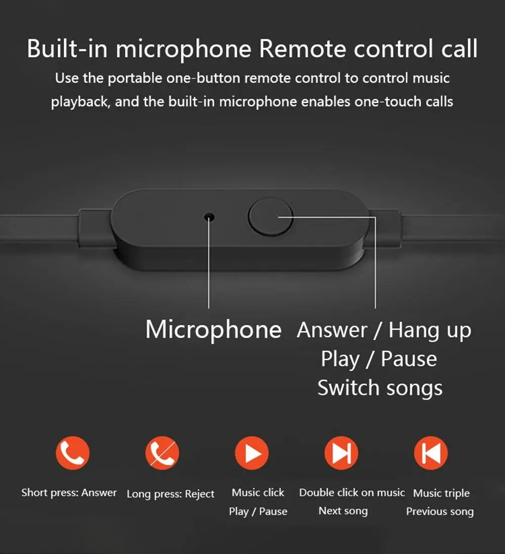 1-button remote with microphone: Control music playback with a convenient one-button remote. Got an incoming call? Answer it on the fly with the built-in microphone.