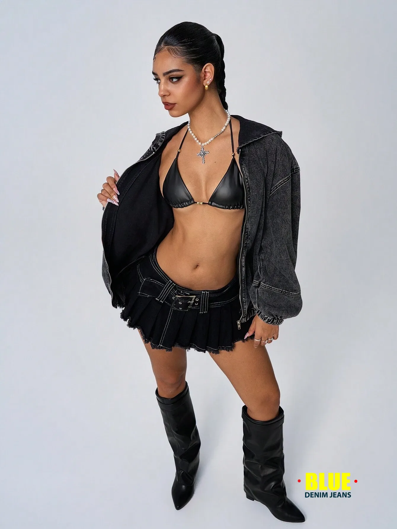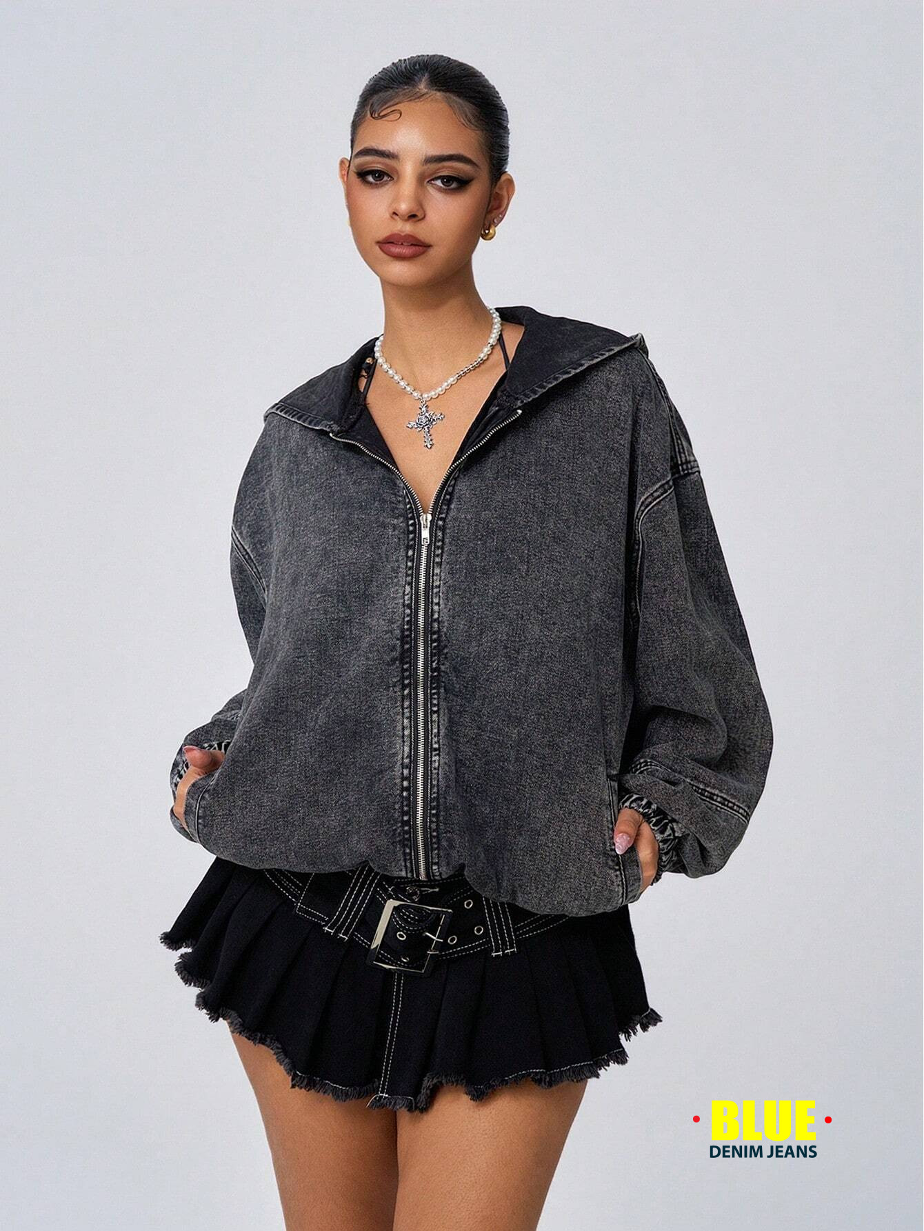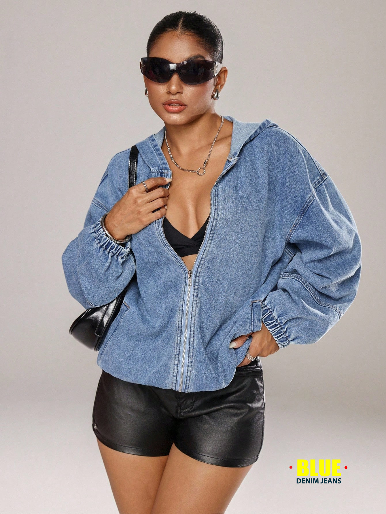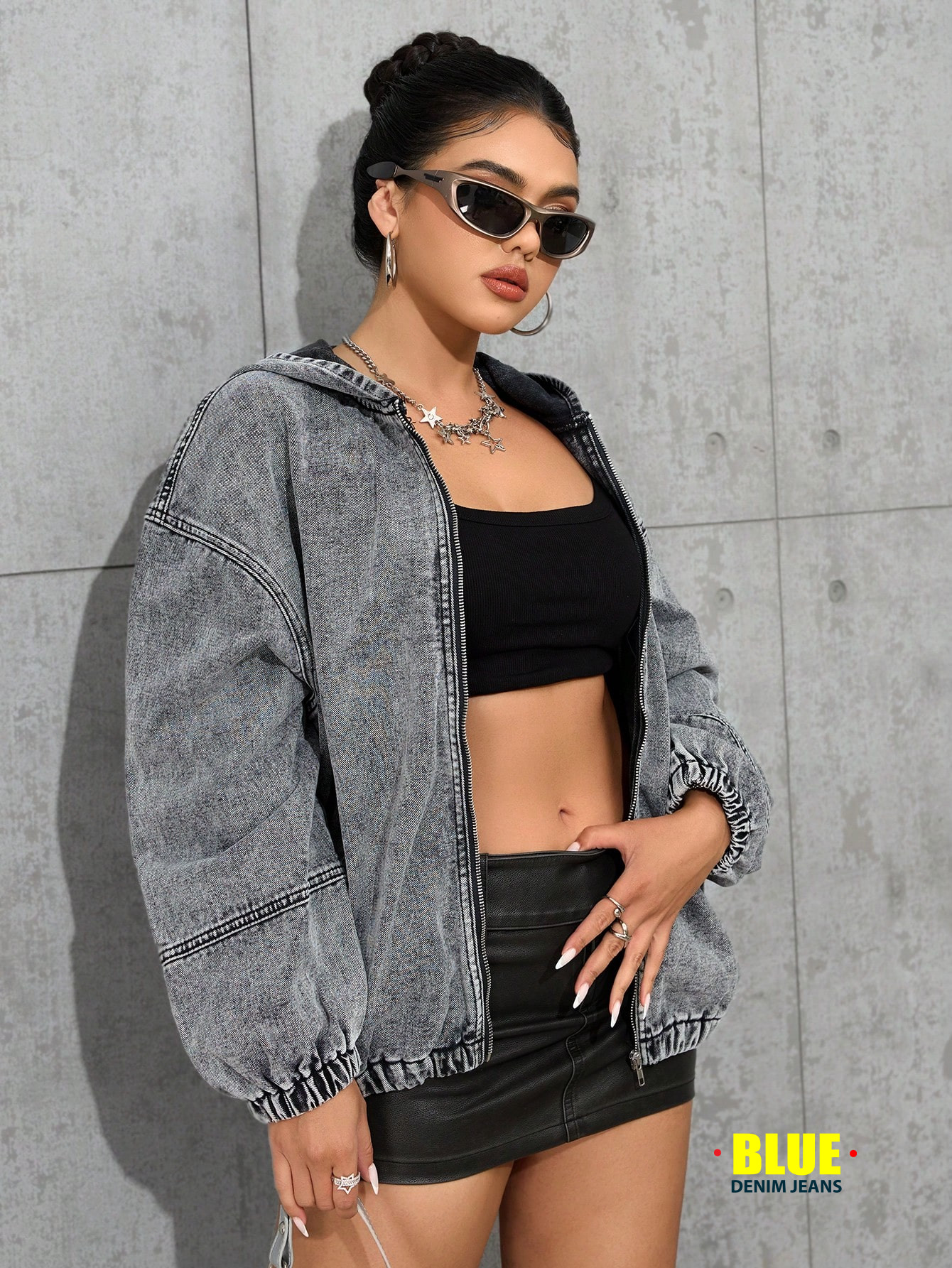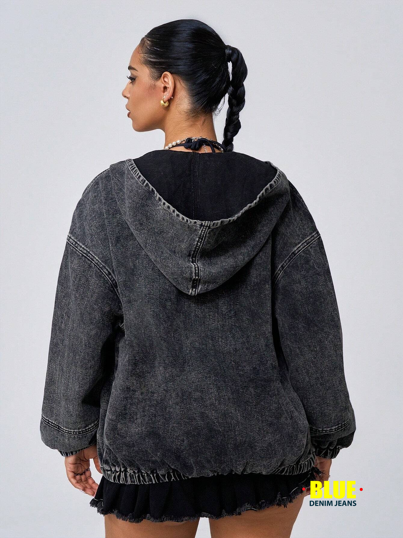 This oversized denim jacket is designed for the modern woman who values both fashion and function. With its drop shoulder sleeves and tight hem, it offers a relaxed yet chic silhouette that complements any outfit.