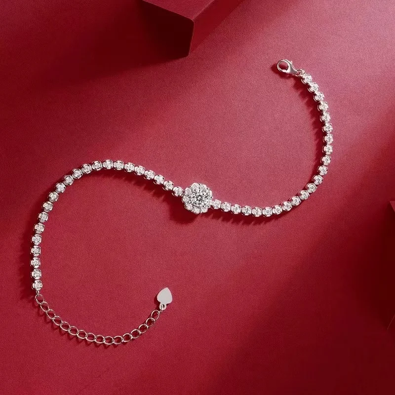 JIU ZUAN 5.0mm D Color Round Cut Moissanite Bracelet Pass Diamond Tester GRA Sterling 925 Silver Tennis Bracelet for Women