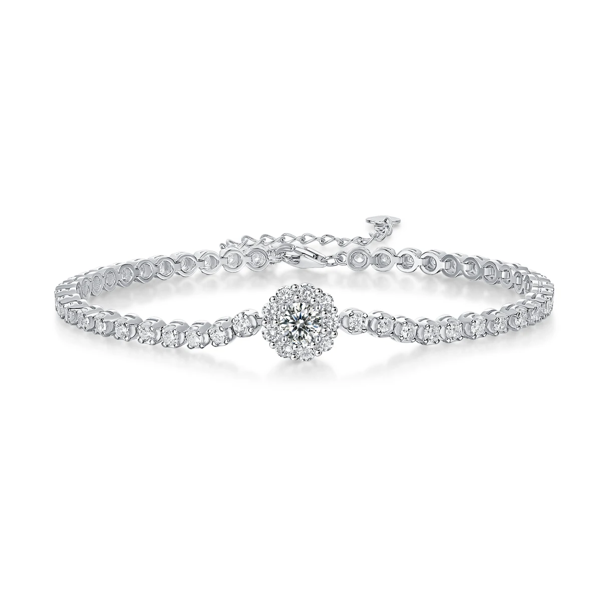JIU ZUAN 5.0mm D Color Round Cut Moissanite Bracelet Pass Diamond Tester GRA Sterling 925 Silver Tennis Bracelet for Women