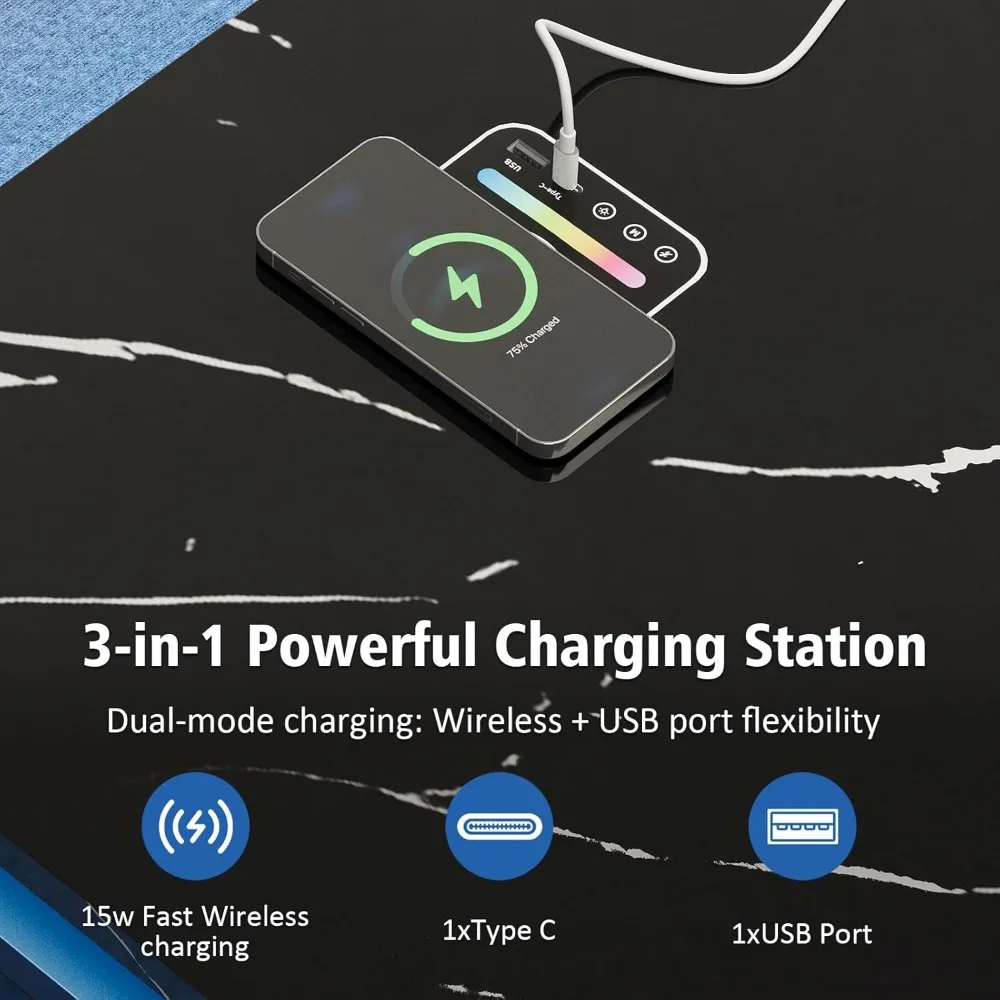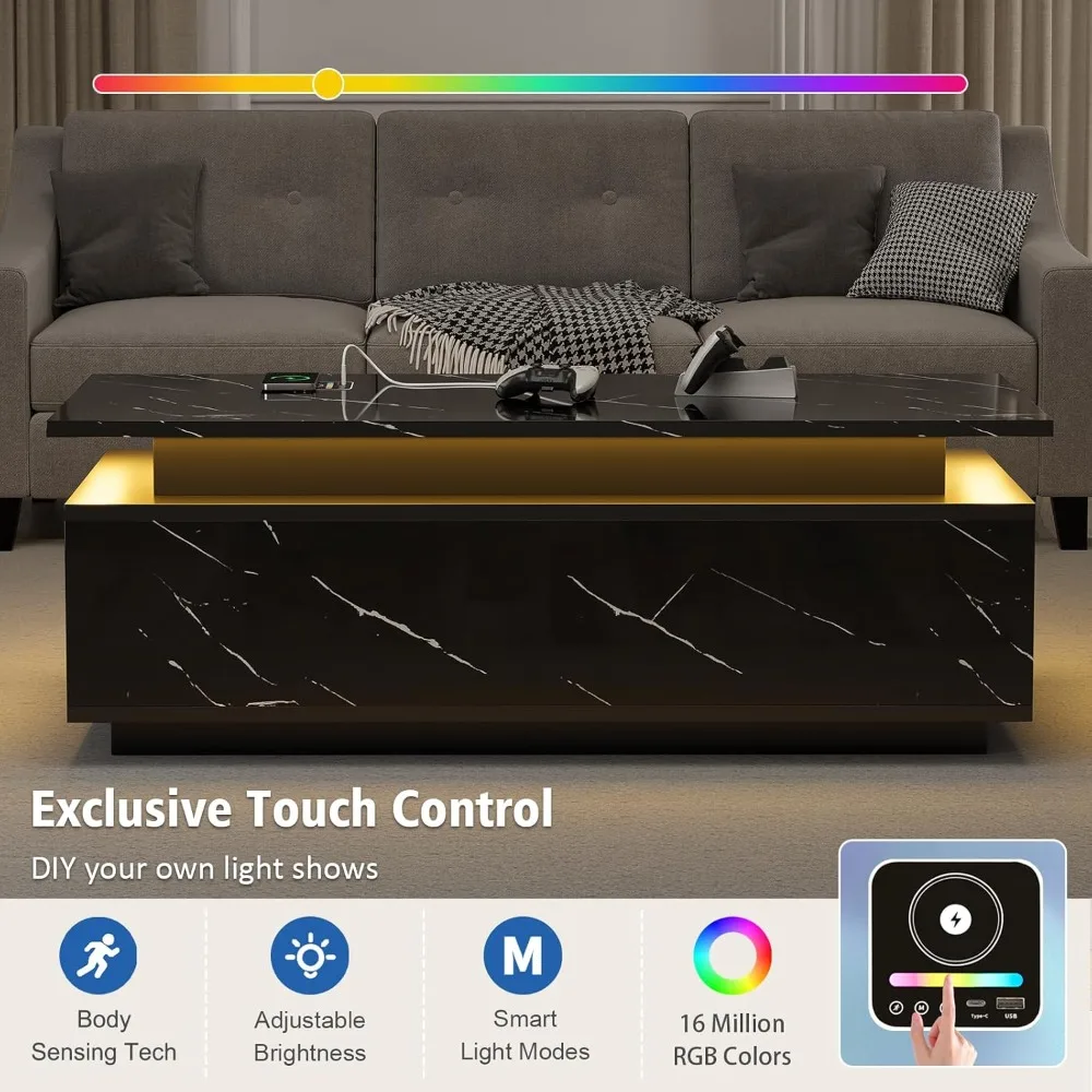 - 【Touch Control LED System】: Our smart coffee table features 24 colors, 3 blinking modes, and a brightness adjustment function. The human sensor function, which can be controlled by touch, adds ambiance to your home and creates an elegant atmosphere. Additionally, our storage coffee table is equipped with 2 USB ports, 1 Type-C port, and wireless charging, so you can say goodbye to charging anxiety