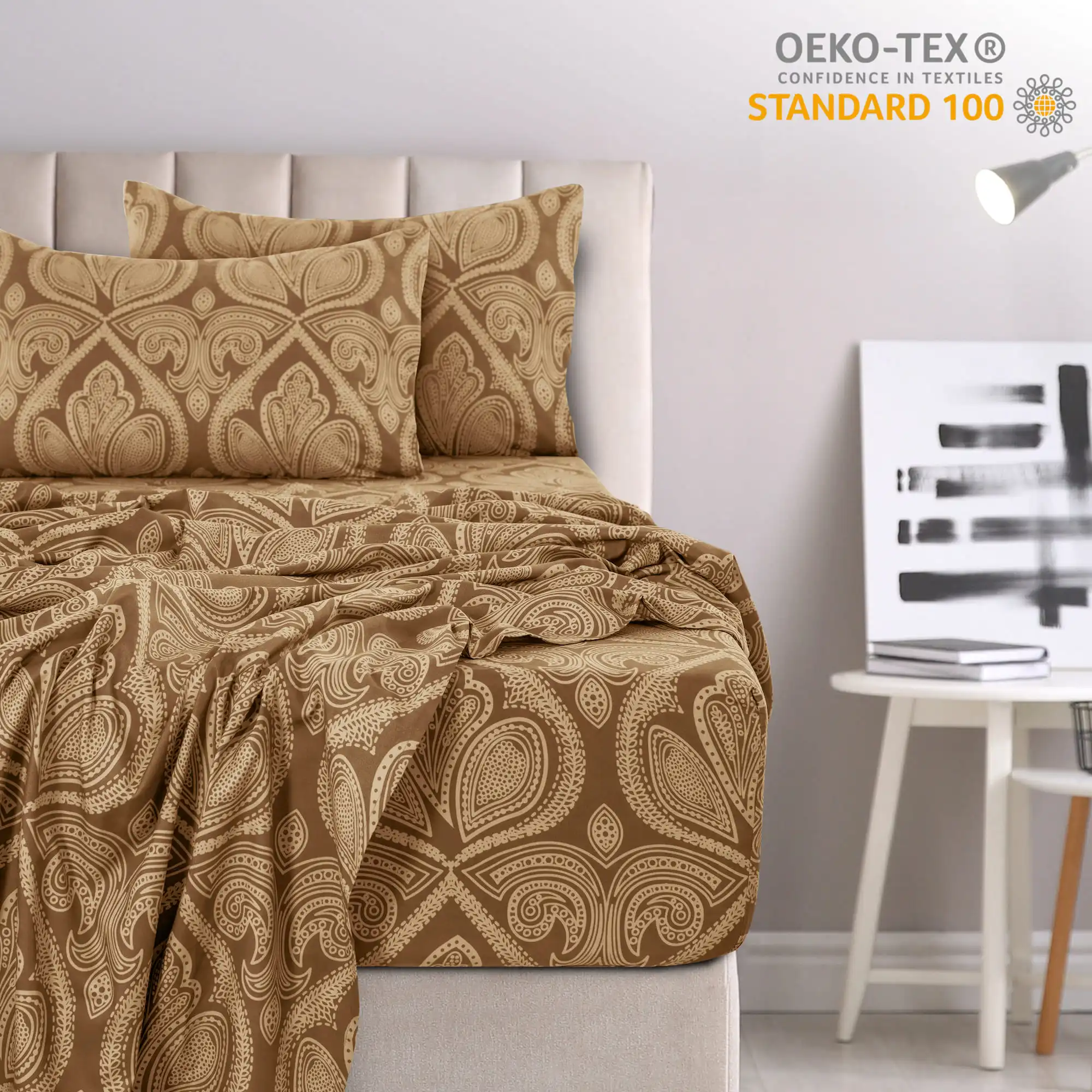 Lux Decor 4-Piece Paisley Bed Sheet Set – Soft Brushed Microfiber Sheets with 16″ Deep Pockets – Wrinkle-Resistant
