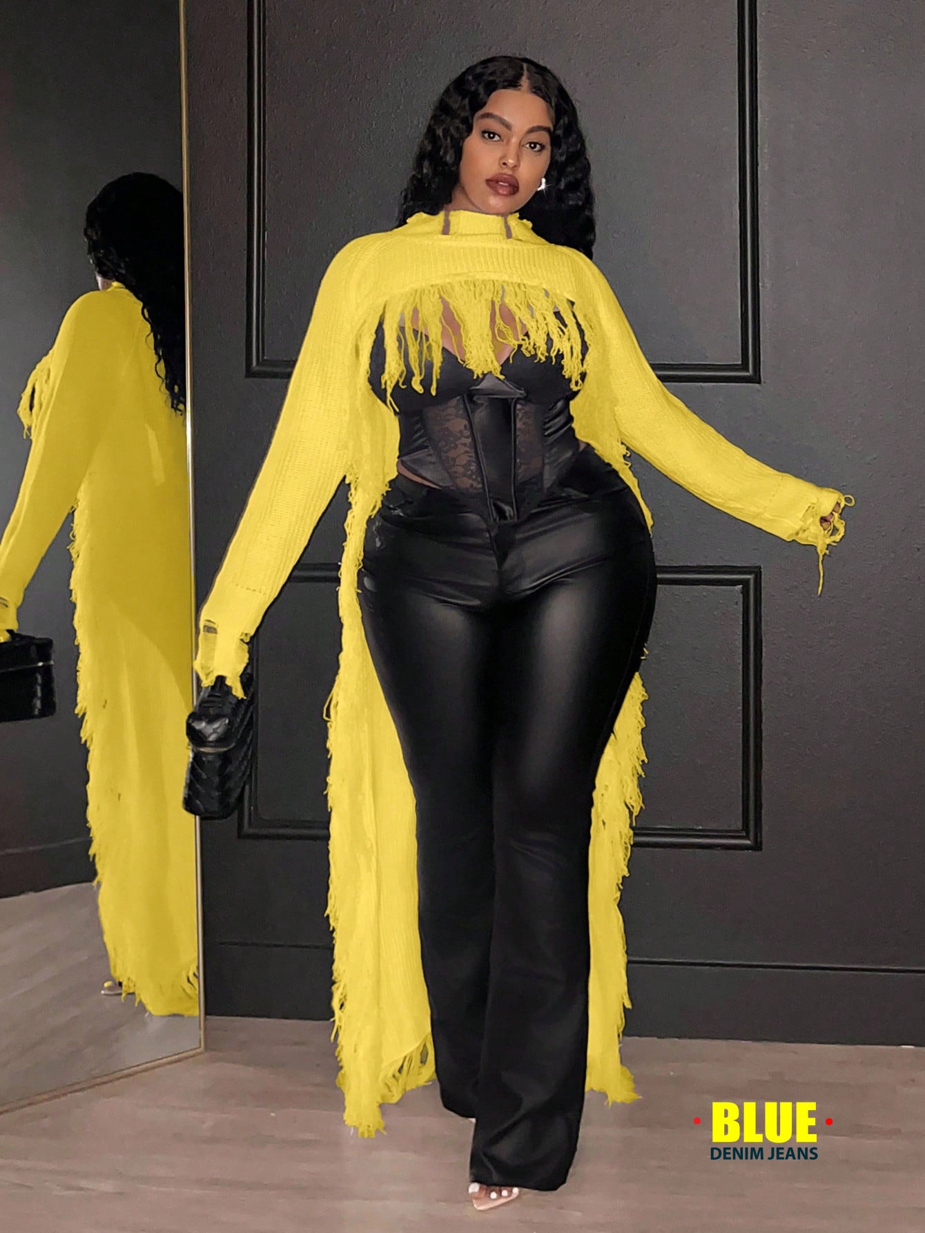 How should I care for the Maweii Plus Size Tassel High-Low Sweater?