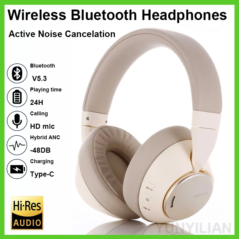 Bluetooth Headphones Active Noise Cancelling -48db ANCpods-Max Headsets HiFi Stereo Earphones