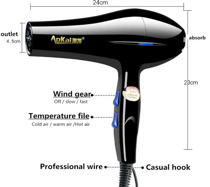 1 review for Professional Powerful Hair Dryer Fast Styling Blow Dryer Hot And Cold Adjustment Air Dryer Nozzle For Barber Salon Tools