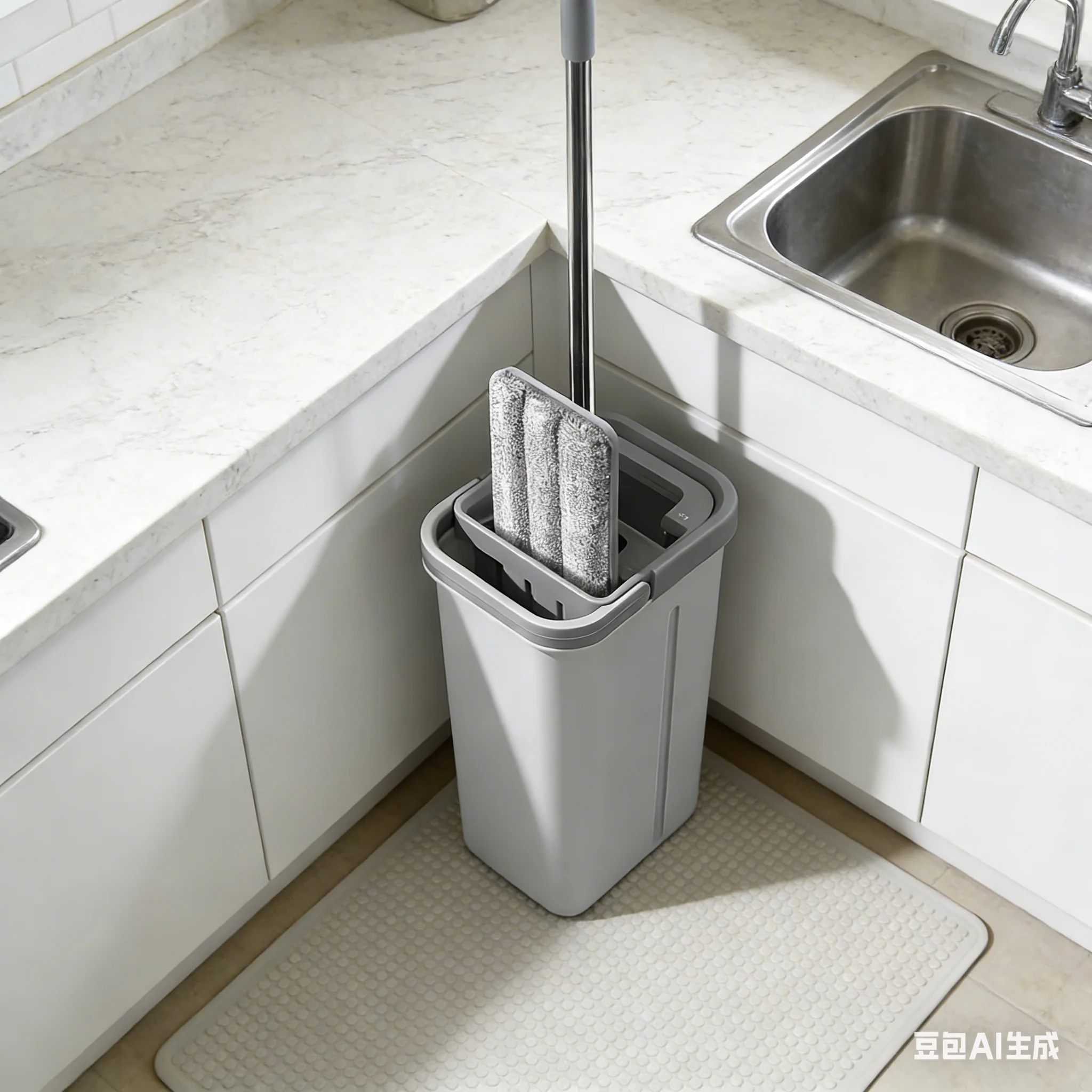 The bucket features a built-in scraper edge to easily remove hair, pet fur, and sticky debris from the mop head before washing. This ensures your mop stays fresh and effective for every use.
