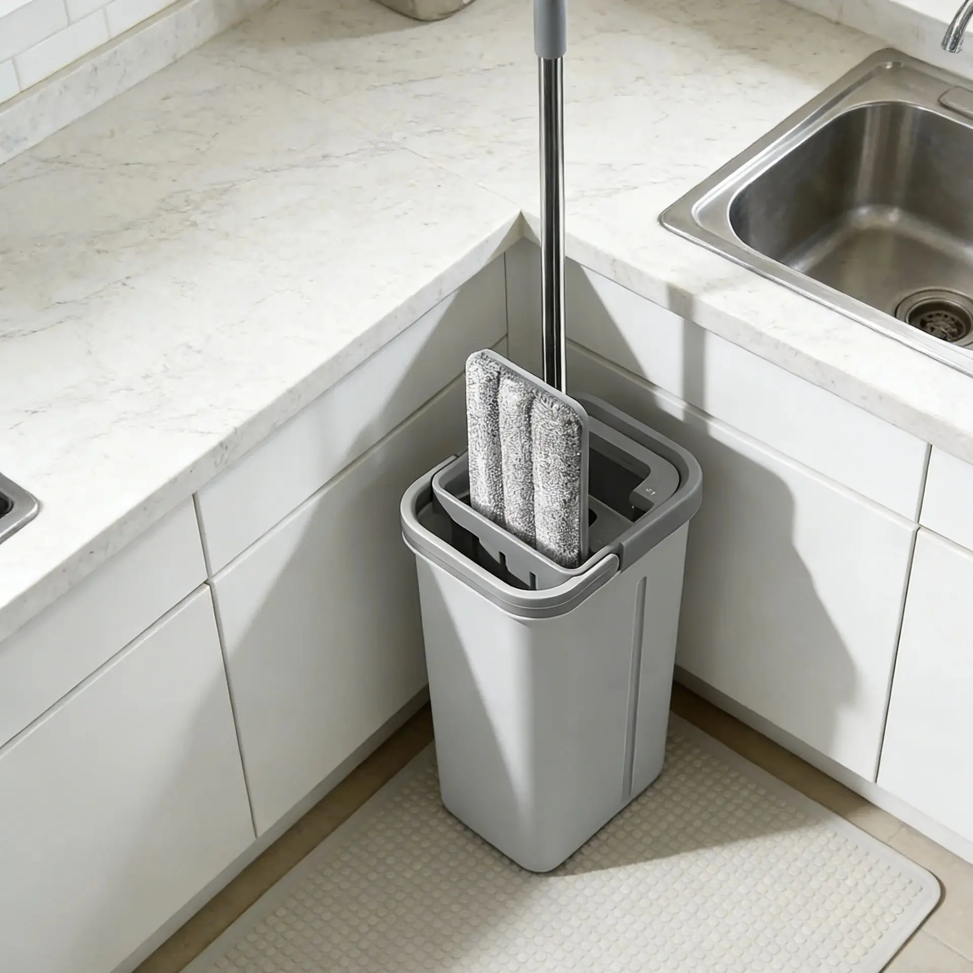 Everything you need in one set. The efficient spin mechanism removes excess water thoroughly, leaving floors ready to walk on faster. A smarter, more hygienic way to clean without the hassle of traditional mops.