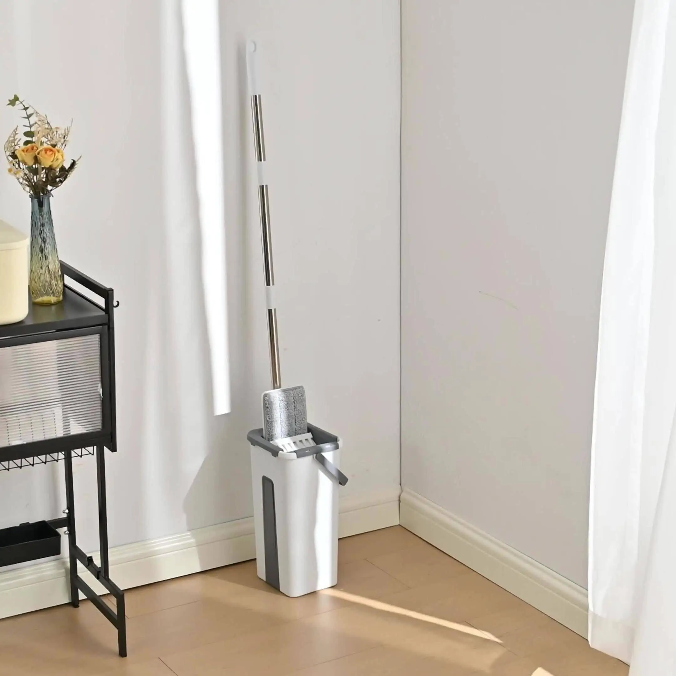 Hands-Free Self-Cleaning Design: Separate wash and wring compartments in the bucket keep clean and dirty water apart, allowing effortless hands-free squeezing without touching dirty water.