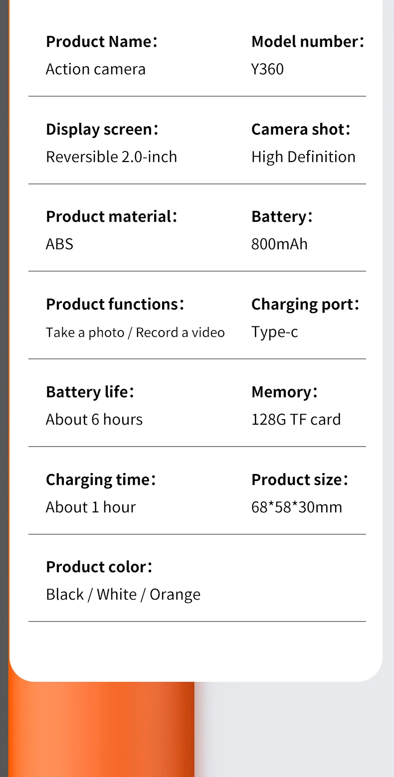 Y360 Sports Camera Life Recorder Flip Screen 4K Ultra Clear Recording Vlog Anti Shake 143 ° Wide-angle Portable Camera Gifts